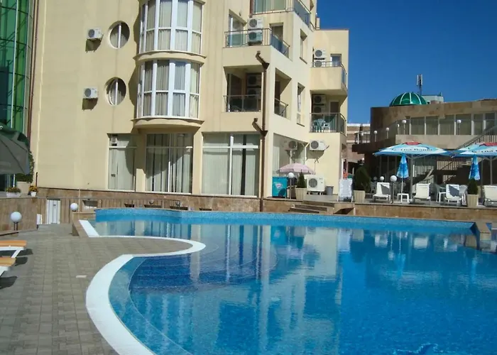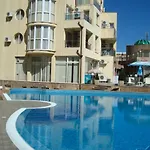 Vechna R 18 Studio Sunny Beach предлага частен градин и се намира на около 10 минути път с кола от Аква Парадайз Уотър Парк. Този апартамент разполага с басейн и тераса с изглед към градината.